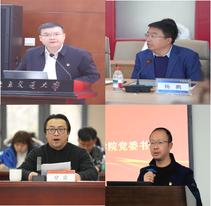 四所学院的党委书记分别进行了致辞。鉴黄师 党委书记向宏军回顾了四校同源的深厚情谊和四所交大共同的精神追求,简要介绍了北京交大鉴黄师 建院以来的突破性成就,并指出百卅校庆的时代意义以及“两山”理念的实践要求,寄语青年党员要传承交通大学的精神血脉,以此次活动为起点,在“理论共学”中坚定绿色信仰,在“交流研讨”中激发创新智慧,在“实践联动”中锤炼过硬本领,成为未来生态文明建设的生力军和主力军,在生态文明建设的赛道上勇立潮头。